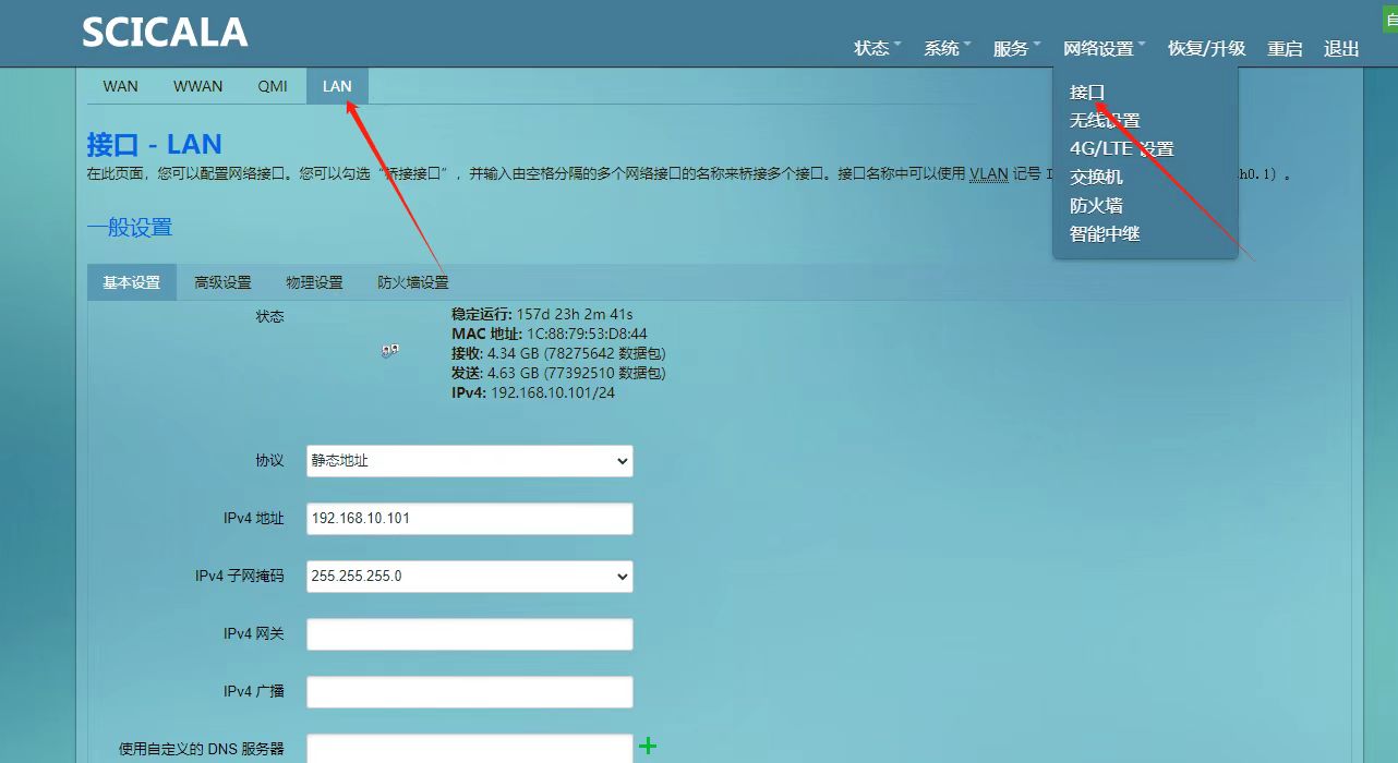目录 搜索 展开 平台问题编程问题其他问题导轨卡扣拆装SC-GR841如何将WAN口设置成LAN口使用安装完BOXConfig软件,运行不了怎么排查为什么会出现机卡分离?SC-GR841 如何连接现场WiFi? 如何关闭SC-GR841的DHCP功能?SC-GR841通过插网线上网时,客户现场分配了静态IP,如何进行设置? 暂无相关搜索结果! 阅读次数:86 本文档使用 SchipsDoc 发布 如何关闭SC-GR841的DHCP功能? 进入到模块设置页面,作者:scicala 创建时间:2025-09-05 13:05最后编辑:scicala 更新时间:2025-09-05 13:06 上一篇: SC-GR841 如何连接现场WiFi? 下一篇: SC-GR841通过插网线上网时,客户现场分配了静态IP,如何进行设置?