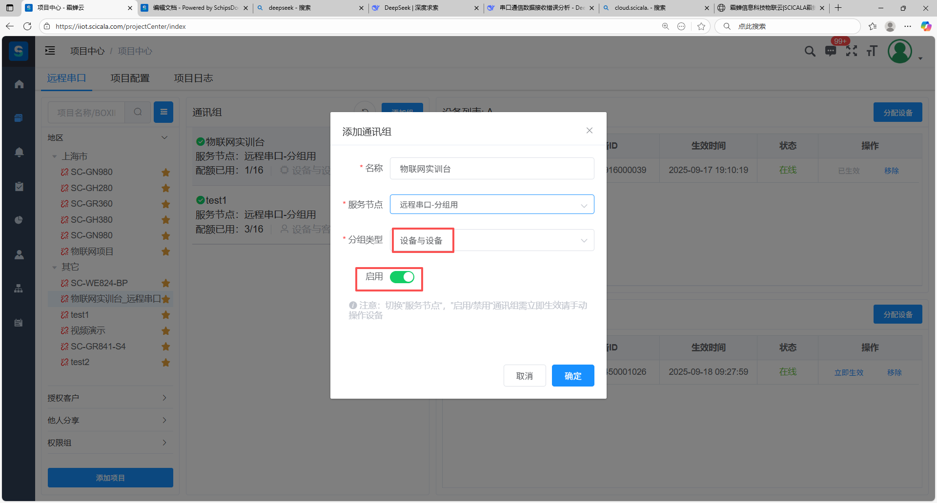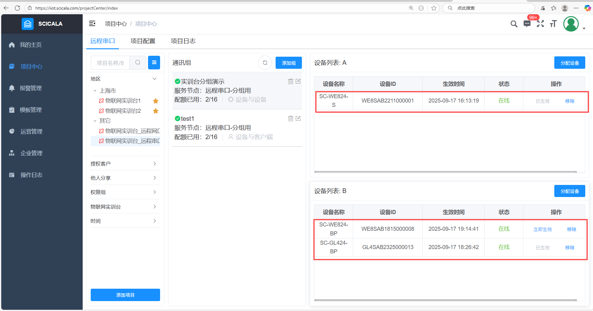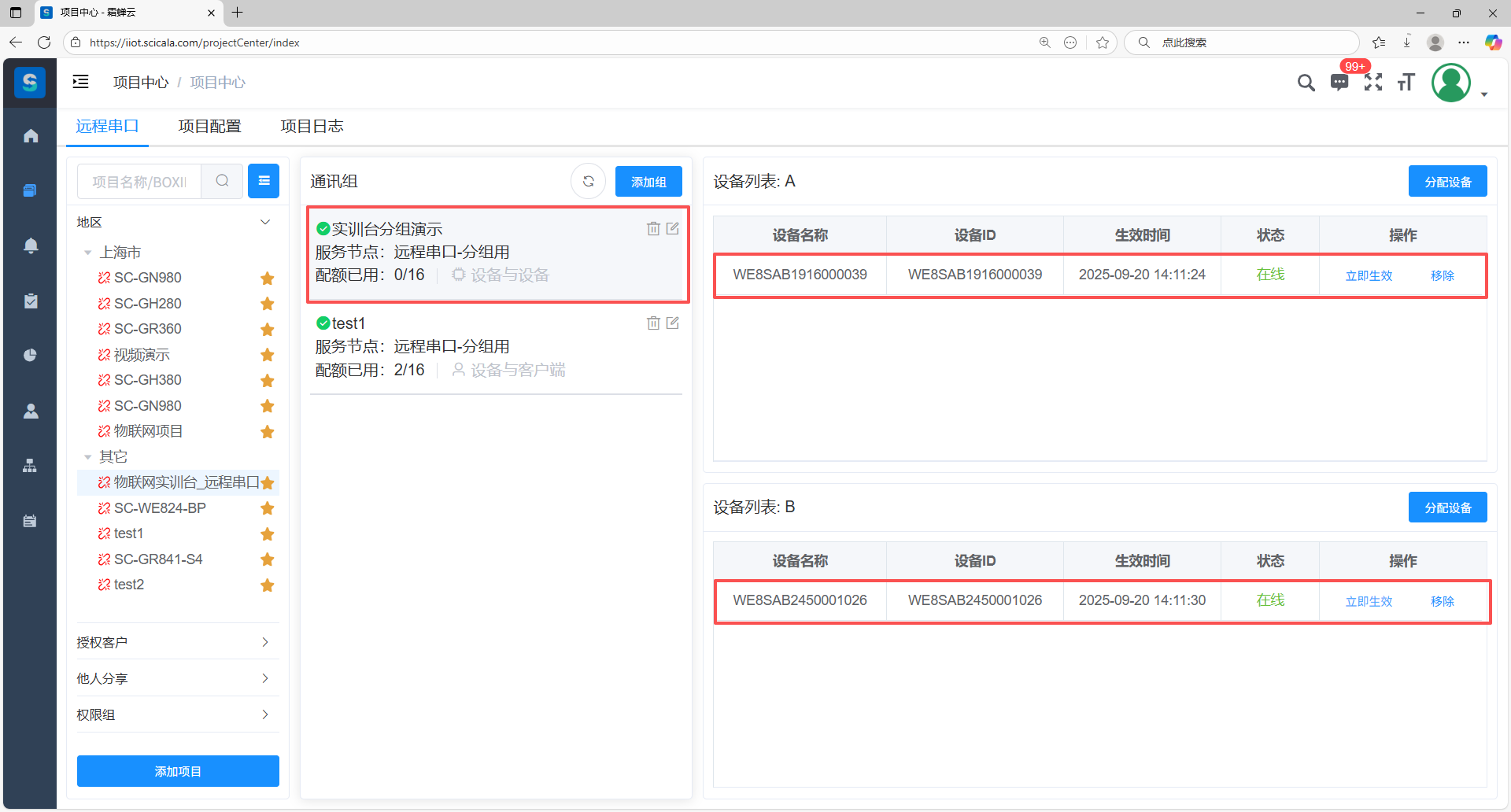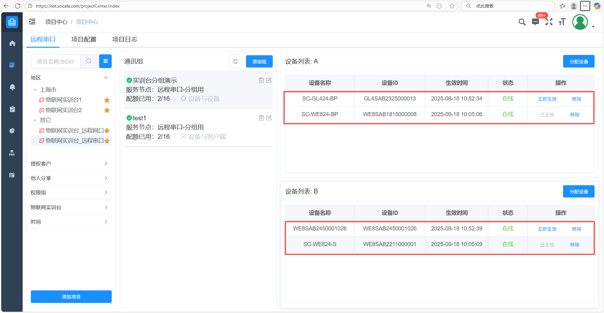 在B组添加多台设备