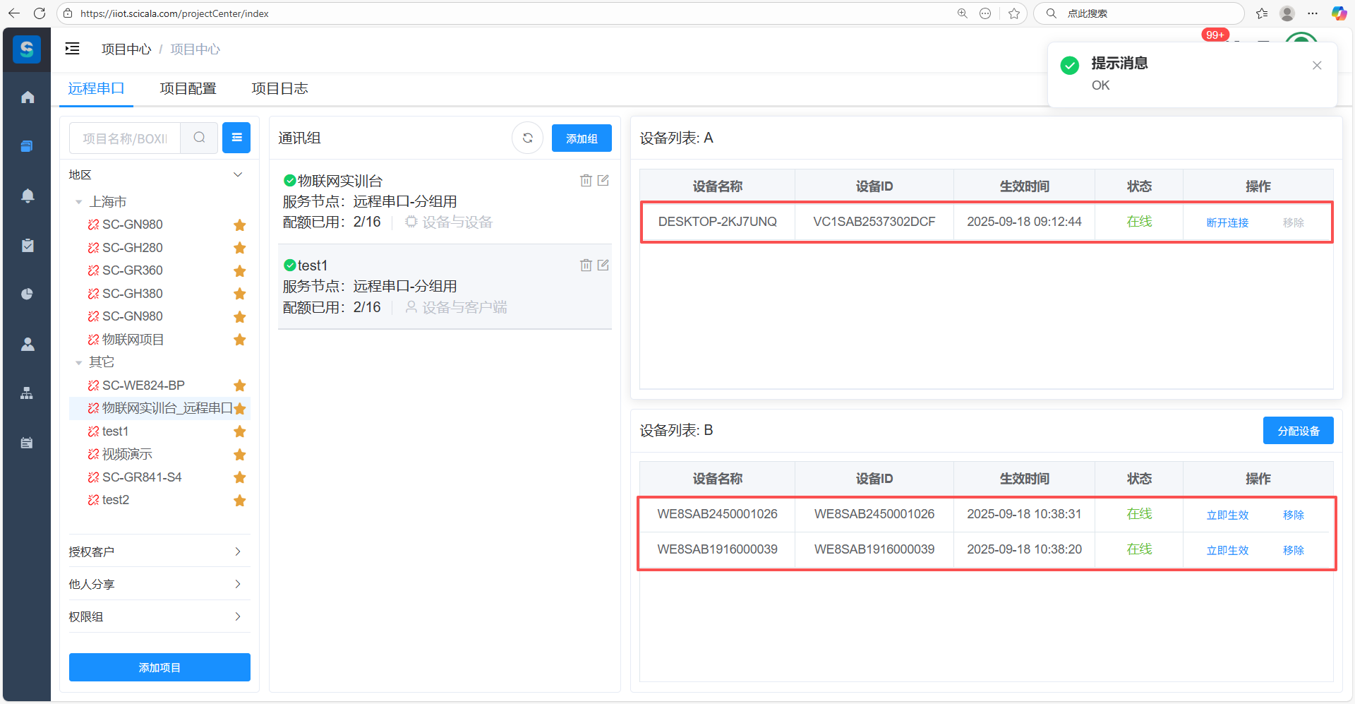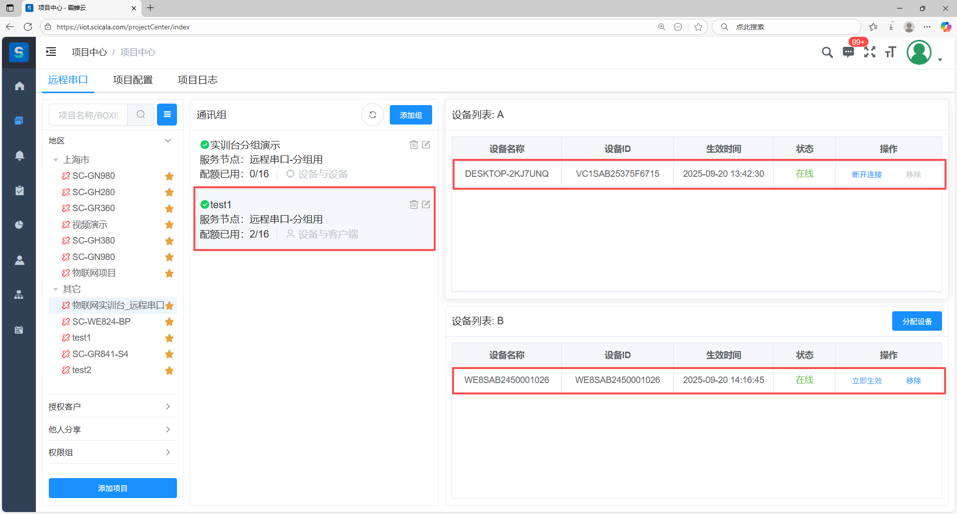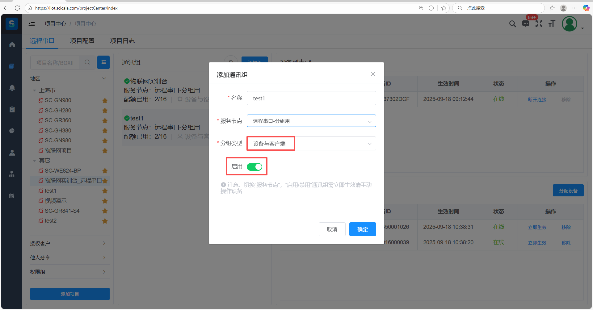 分为客户端和设备,点分配设备,进行添加设备,点击立即生效。