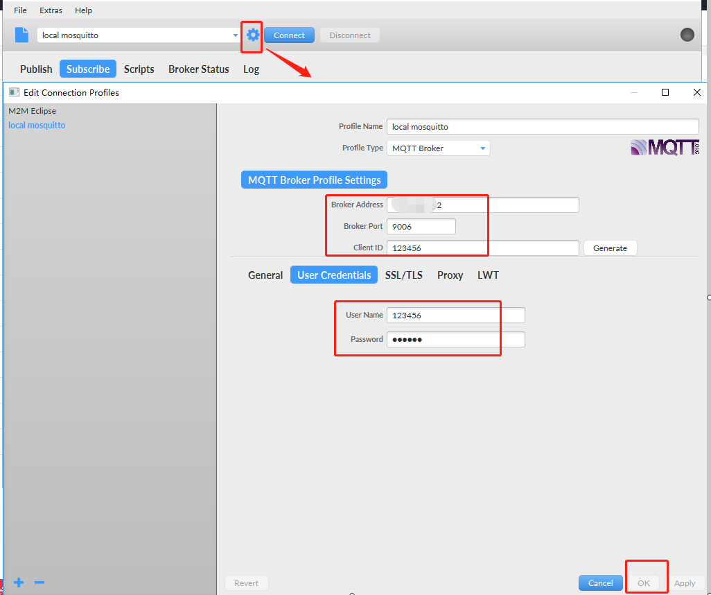 其中 mqtt 主机名,mqtt端口号,mqtt username,mqtt password 要填入MQTT配置中;