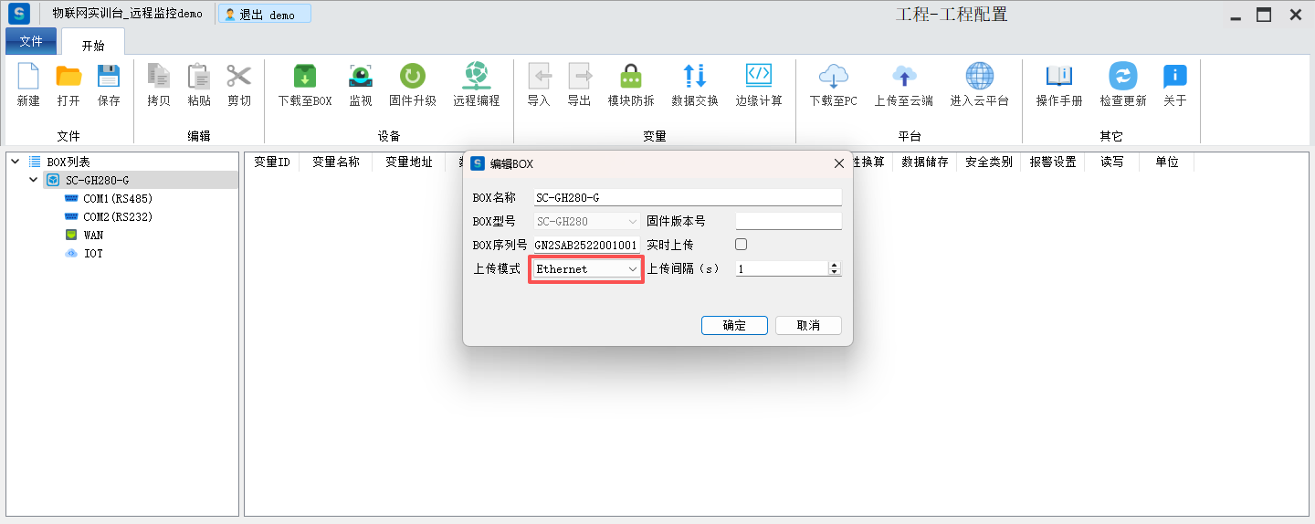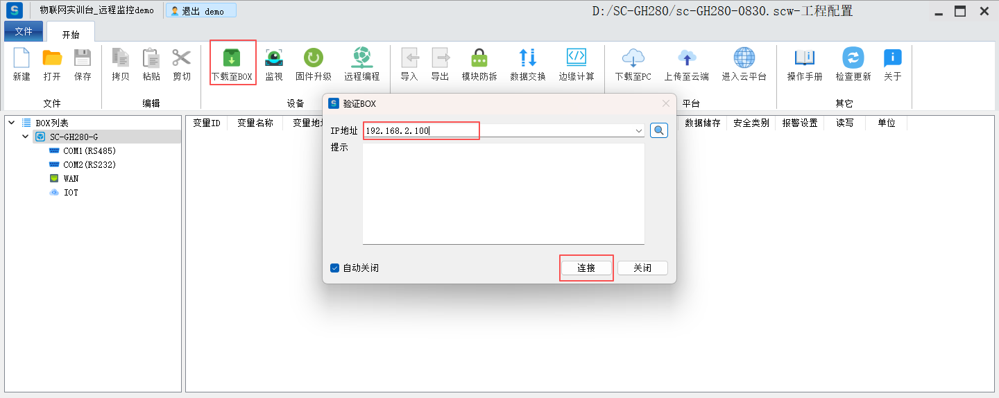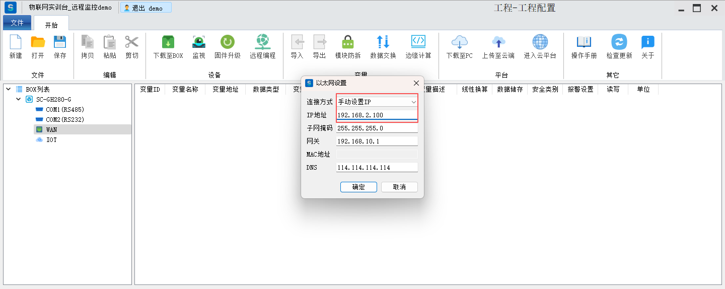 双击LAN—>设置新IP—>下载至BOX(输入旧IP)—>下载成功(BOXIP变成新IP)