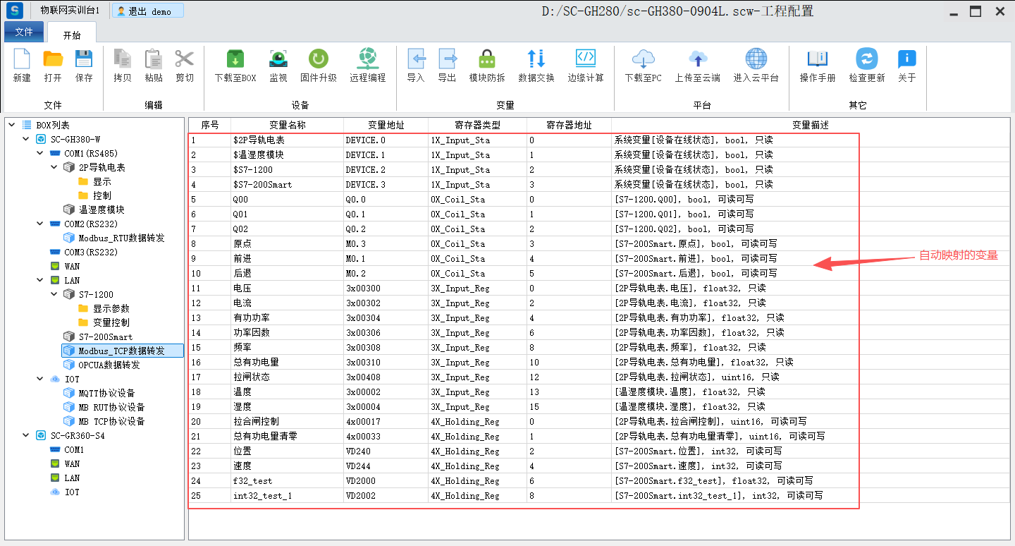 说明:BOX采集PLC到数据后,通过MODBUS协议传输给第三方软件。