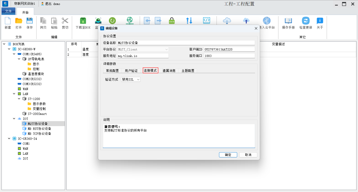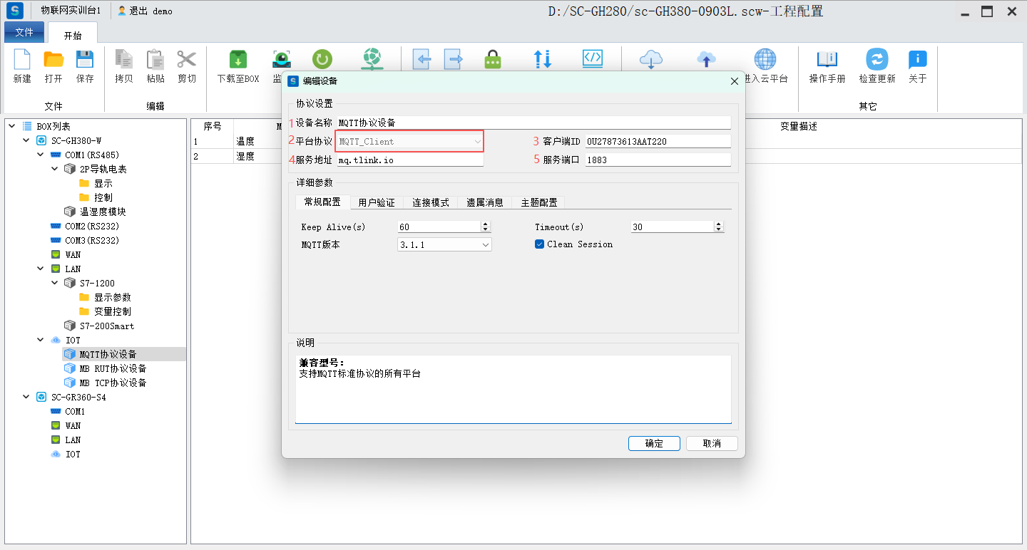 5 服务端口:根据协议填写,MQTT协议通常使用 1883(非SSL)或 8883(SSL加密)