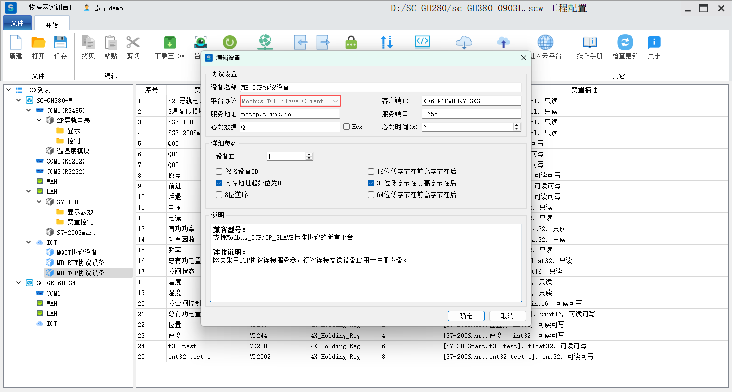 用于处理字节序(Endianness) 问题。某些设备(如部分西门子PLC)传输数据时,会先传高位字节再传低位字节(大端序),而Modbus标准通常为先低后高(小端序),具体选项根据变量进行勾选,