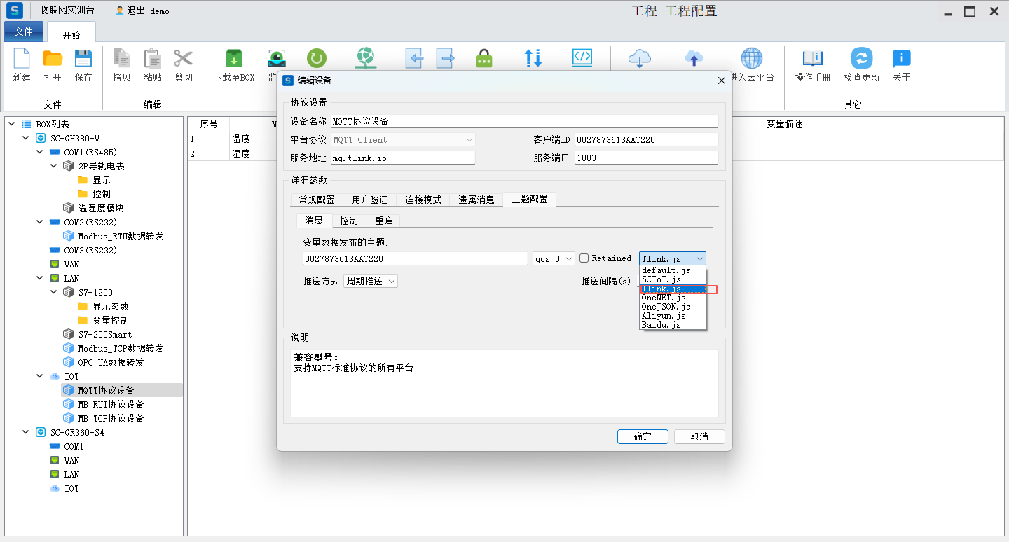 tlink.js 本质上是一个“驱动脚本”它们的作用是将BOX采集到的的原始数据,“翻译”成目标物联网平台能够听懂的“语言。