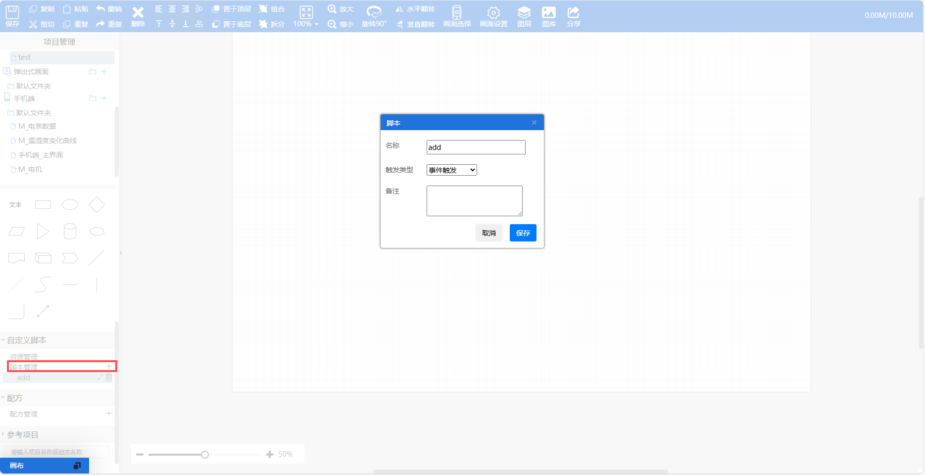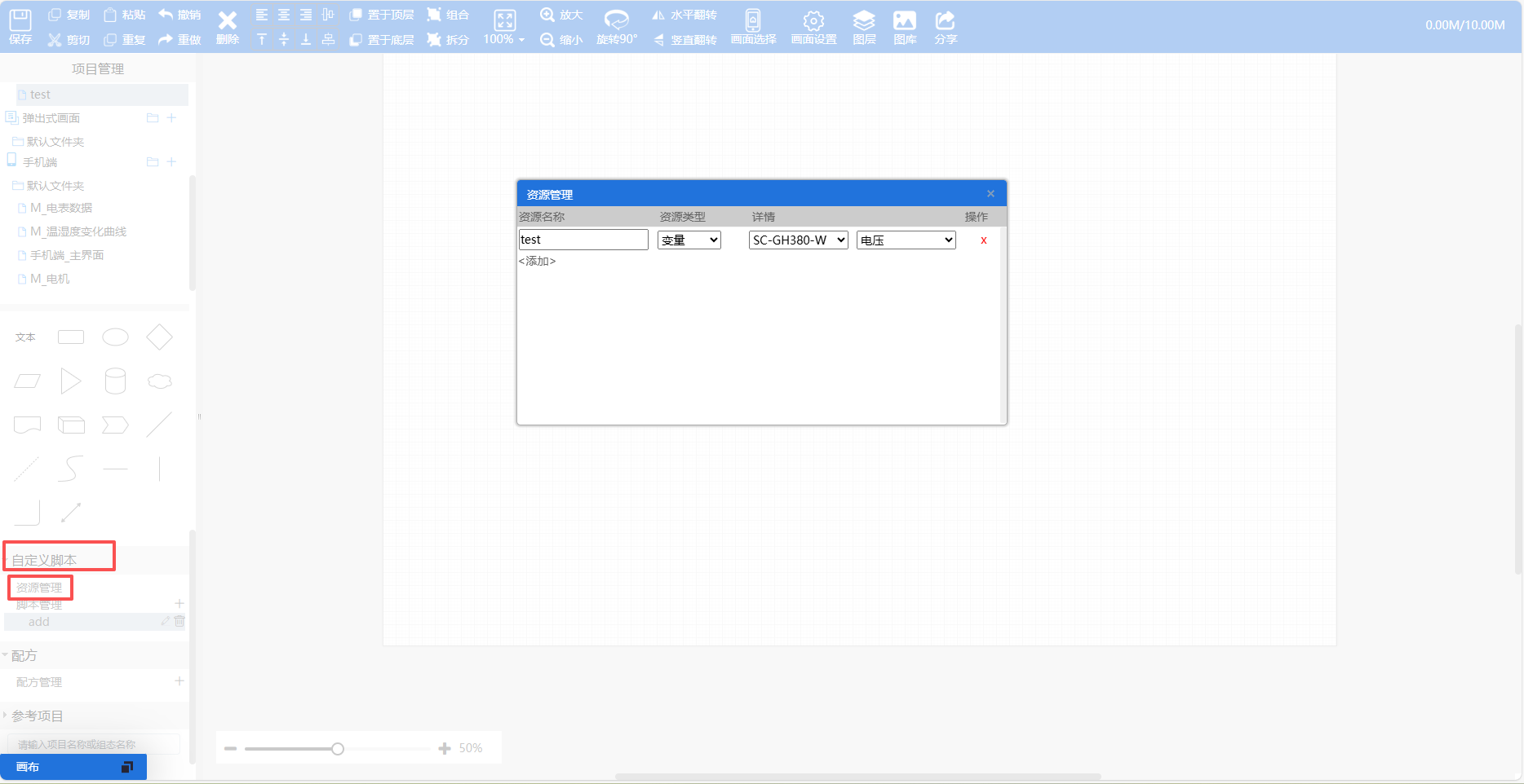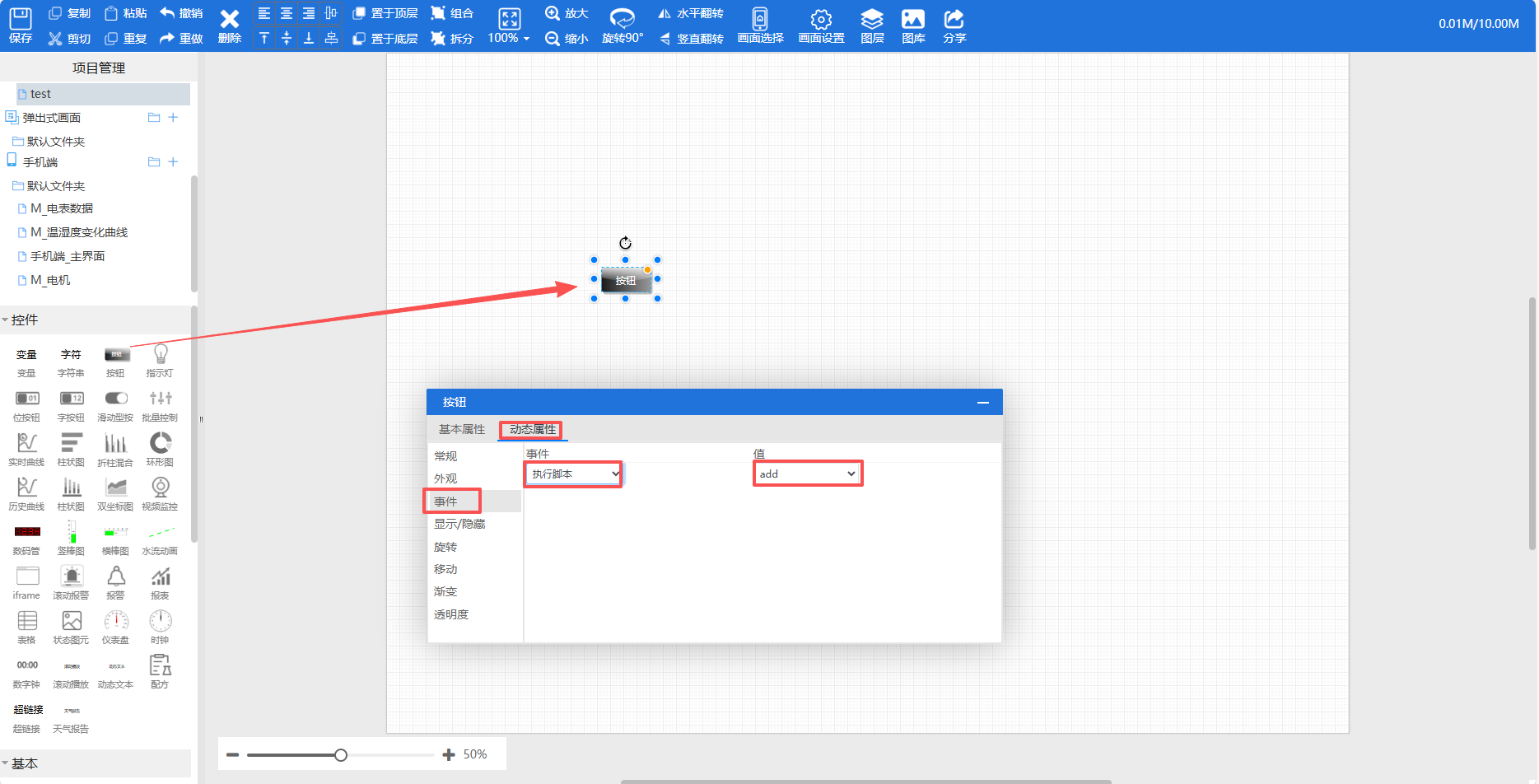 目录 搜索 展开 标准功能云网关系列入门使用流程客户端软件使用说明SC-EdgeConfig路由器功能交换机功能固件升级功能远程编程功能数据采集功能模块防拆功能数据交换功能边缘计算功能OPCUA数据转发MODBUS数据转发IOT功能数据格式default.jsSCIoT.jsTlink.jsOneNET.jsOneJSON.jsAliyun.jsBaidu.jsSC-VCOMSC-SCLink云平台使用说明我的主页项目中心远程串口远程网口远程监控报警管理模板管理运营管理客户管理企业管理操作日志消息中心云组态使用说明准备工作名词解释元素属性分类功能使用新建画面插入背景图片设置背景色插入静态文本显示动态文本指示灯按钮控制(图片按钮)字按钮控制(图片按钮)矢量按钮控制图形变色棒图仪表盘数码管超链接水流效果自定义图库画面跳转实时曲线历史曲线报表报警数子钟视频监控时钟动态文本滚动播放表格批量控制控制变量显示变量数值自定义脚本BOX系列说明SC-GH280使用说明SC-GH380使用说明SC-GH360使用说明API文档token接口基础数据获取项目获取BOX获取设备获取变量数据接口实时数据变量控制获取历史数据获取所有报警活跃报警确认历史报警删除获取报警确认记录获取报警历史记录组态接口获取组态画面OPCDA使用说明OPCUA和MODBUS数据服务视频教程SC-GH380采集西门子串口PLC数据SC-GH380远程编程西门子S7-200-SMART PLCSC-GH380远程编程三菱串口PLCOPCUA数据转发Modbus数据转发边缘计算 暂无相关搜索结果! 阅读次数:53 本文档使用 SchipsDoc 发布 自定义脚本 示例:每按一次按钮,变量自增1,最大8,按另一个按钮,变量自减1,最小1添加资源名称,类型添加脚本获取变量的值代码实现功能设置变量值,检查语法,保存新建画面,添加按钮,关联变量自减操作相同,只是代码不同这样能实现便能每按一次按钮,变量自增1,最大8,按另一个按钮,变量自减1,最小1作者:霜蝉科技 创建时间:2025-09-28 09:50最后编辑:霜蝉科技 更新时间:2025-09-29 09:16 上一篇: 显示变量数值下一篇: BOX系列说明