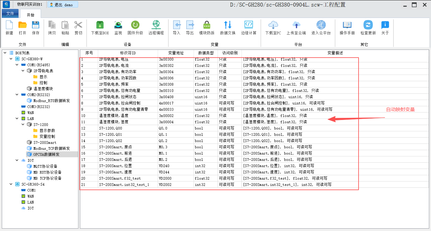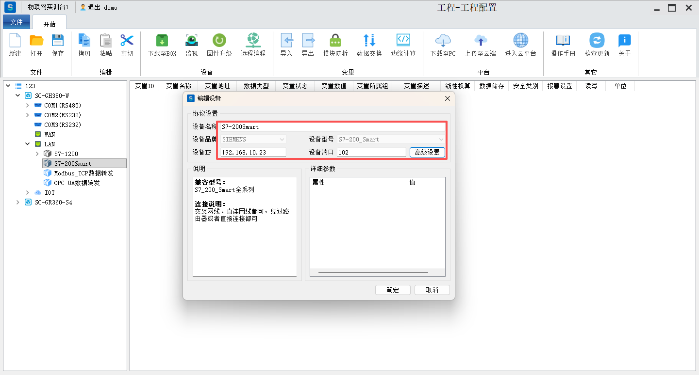 SC-GH380网关设备与西门子S7-200 SMART通过网口连接,