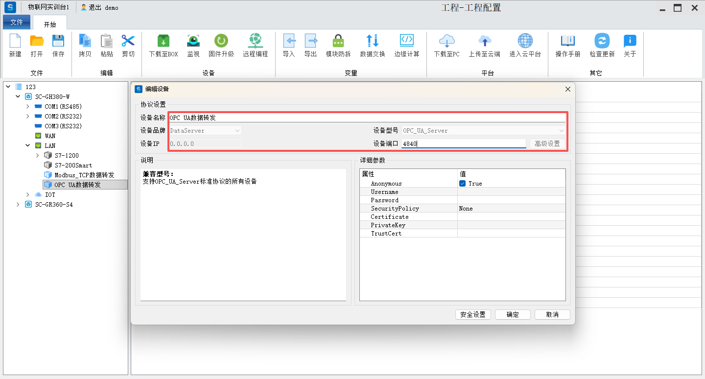 第三步配置OPC UA参数
