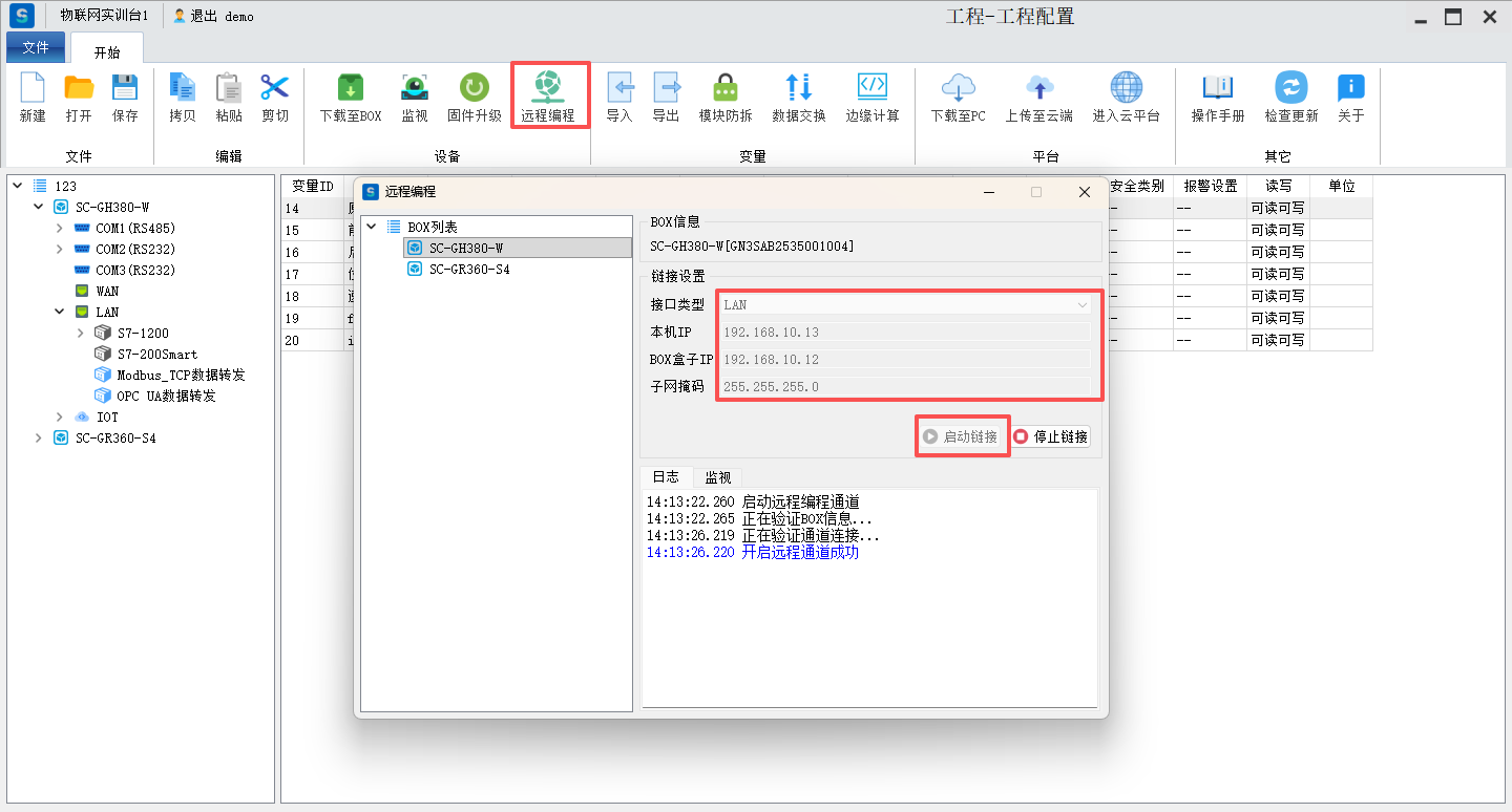 若设备与电脑远程连接,开启远程编程,设置参数,启动链接